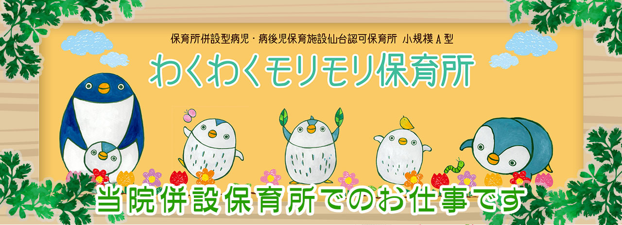 | 仕事内容 | 保育業務 ・0歳から2歳児の保育を担当して頂きます。 ・病児病後児保育も行っております。 |